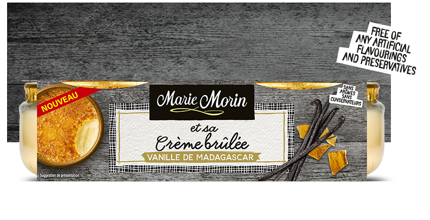 Ingredients : Crème fraîche 72%, egg yolks*, sugar, Madagascar vanilla extract 1%. Sachet of caramel pieces 5g (sugar, glucose syrup). *Free-range eggs. May contain traces of gluten and nuts. Sprinkle the shards on the surface, and enjoy cold or after 2 minutes under the grill