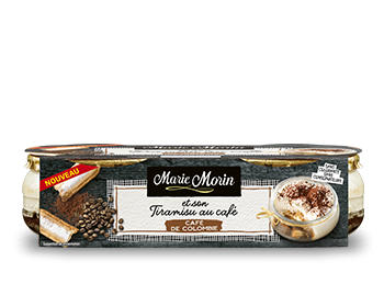 Dressage : réaliser une quenelle de crème chocolat froide et déposez-la délicatement sur les Tiramisu au café Marie Morin.