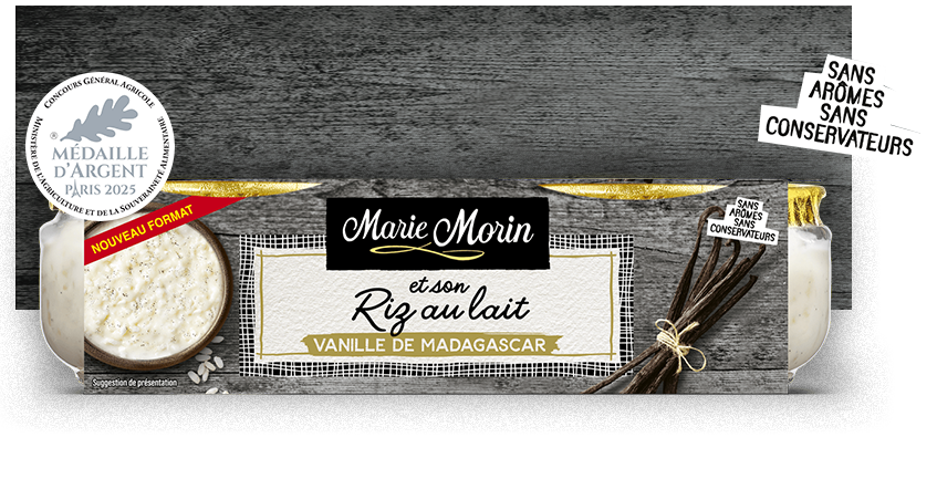 Le lait bio de Bretagne se même au riz rond de Camargue et à des notes de beurre salé, de sucre et de vanille de Madagascar. Ces saveurs et textures douces et gourmandes vous replongent en enfance.